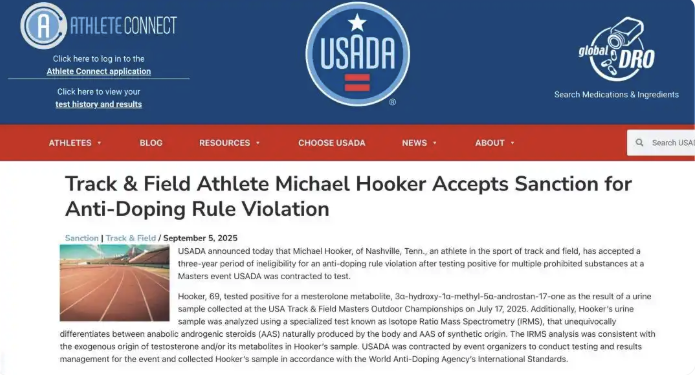 近日,美国反兴奋剂机构发布一则处罚公告,69岁的田径运动员迈克尔·胡克因多种兴奋剂检测阳性被判三年禁赛。