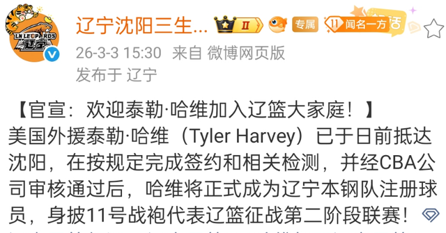 对于辽宁男篮来说,这个窗口期可以说是非常关键,毕竟目前他们只排名第12的位置,乌戈利用这段时间进行了战术的演练,同时球队方面也对外援进行了更换,辽宁男篮官方宣布,上赛季在上海男篮效力的哈维正式加盟。